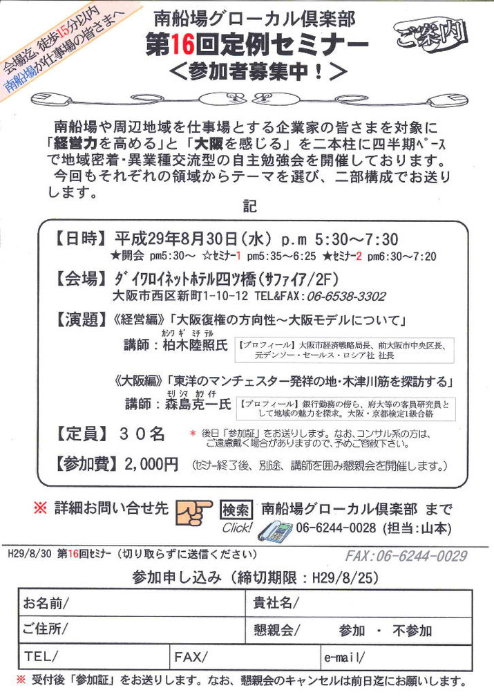 ● 第16回定例セミナーを平成29年8月30日(水)に盛会裡に開催いたしましたので、以下に詳細をご報告させていただきます。