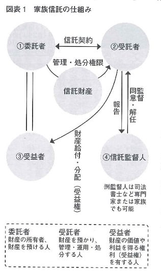 家族信託の仕組みは図表1のようになりますが、若干補足します。