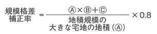② その宅地が標準的な間口距離及び奥行距離を有する宅地であるとした場合の1㎡当たりの価額に、普通住宅地区の奥行価格補正率、不整形地補正率などの各種画地補正率のほか、規模格差補正率を乗じて求めた価額に、その宅地の地積を乗じて計算した価額