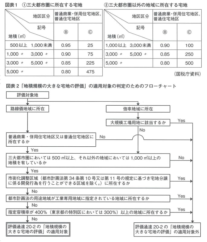 (注)上記算式により計算した規模格差補正率は、小数点以下2位未満を切り捨てる。算式中の「B」及び「C」は、地積規模の大きな宅地の所在する地域に応じて、それぞれ次に掲げる図表1のとおりです。