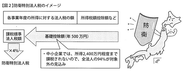 基礎控除額は年500万円なので、中小企業では所得が2400万円程度までは課税されません。これにより、全法人の94%が対象外になると見込まれています。【図2参照】